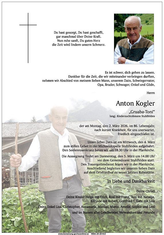 In stiller Anteilnahme geben wir bekannt