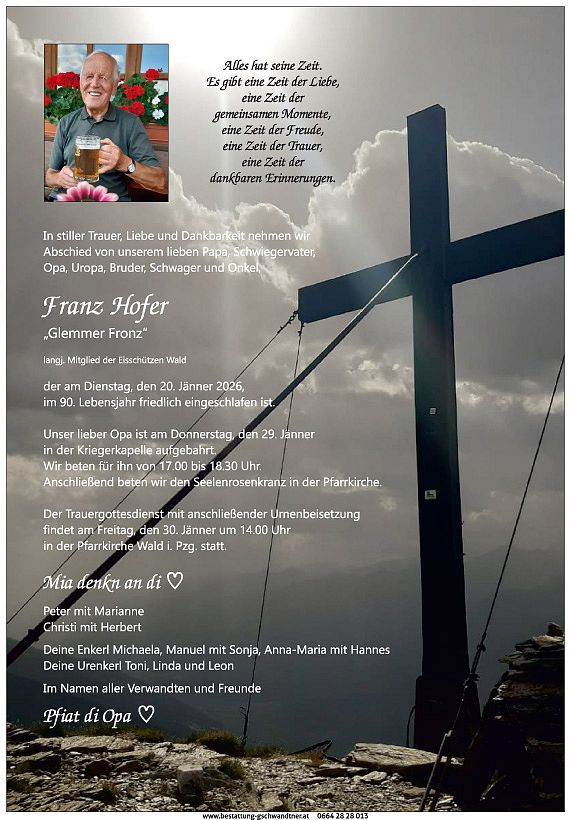 Schreiben Sie uns eine E-Mailoffice@bestattung-gschwandtner.at