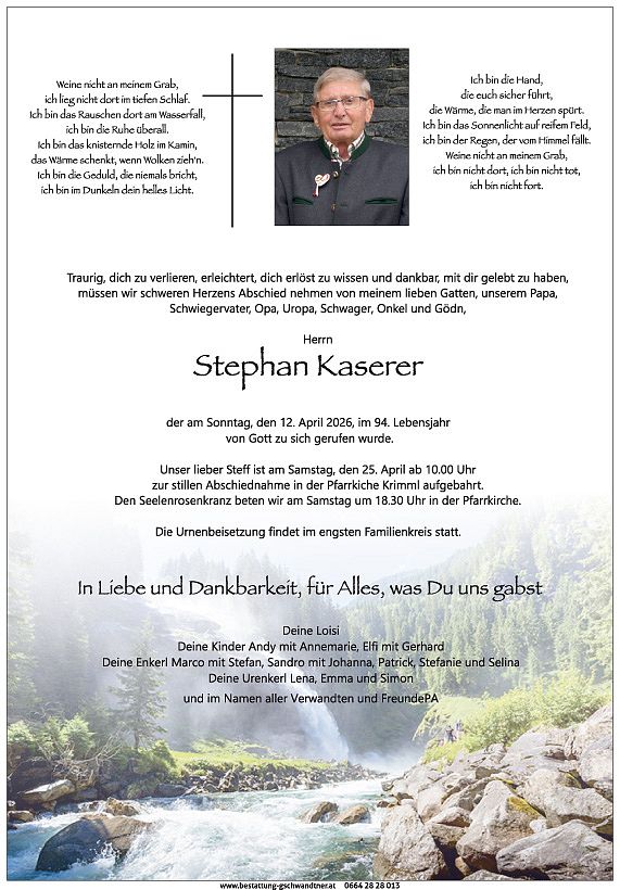 In stiller Anteilnahme geben wir bekannt